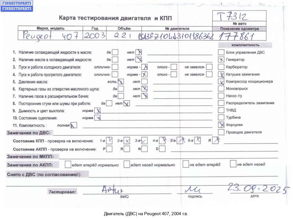 | Ханты-Мансийск | 2004 | DW10, кВт 100/136 л.с., тип: RHR (DW10BTED4) Siemens, номер: PSA RHR 10DYTE 4064684 (с бирки), пробег: 157078 км | |||